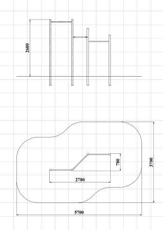 Спортивный комплекс выполнен из металлического каркаса состоящего из трех частей: двух П-образных турника и одной соединительной перекладины.