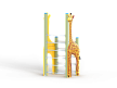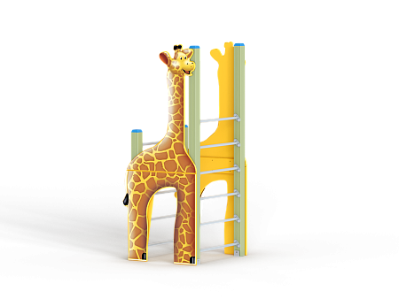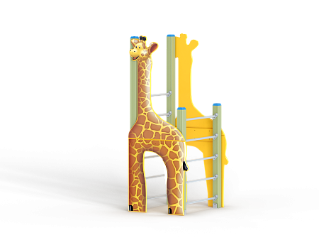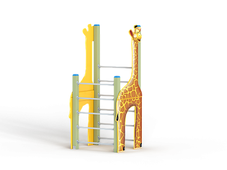 Спортивный комплекс состоит из столбов с перекладинами между ними и фанерных стенок с ручной художественной росписью в виде жирафа.
