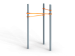 Воркаут состоит из трех несущих столбов и трех перекладин с зажимными хомутами.