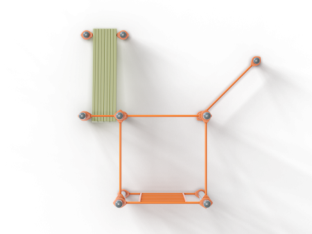 Воркаут состоит из восьми несущих столбов, семи перекладин, шведской стенки и наклонной скамьи из бруса с зажимными хомутами.
