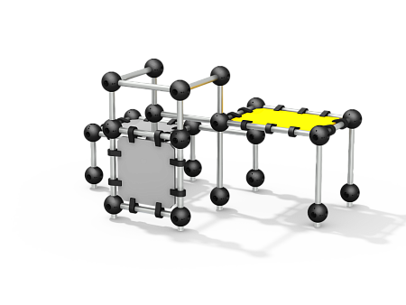 Комплекс низкие платформы выполнен в виде комбинации металлических элементов из стали с оцинкованным покрытием, площадок и стенк из HPL пластика, с антивандальными и безопасными соединениями между собой. Оцинковка металла производится методом электрохимической гальванизации.