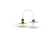 Комплекс состоит из разборного металлокаркаса с двумя столиками и пластиковыми бубликами.