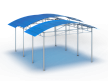 Навес для тренажеров представляет собой сборный каркас из металлических деталей с крышей из поликорбаната. Под навесом можно расположить различные комбинации тренажеров.